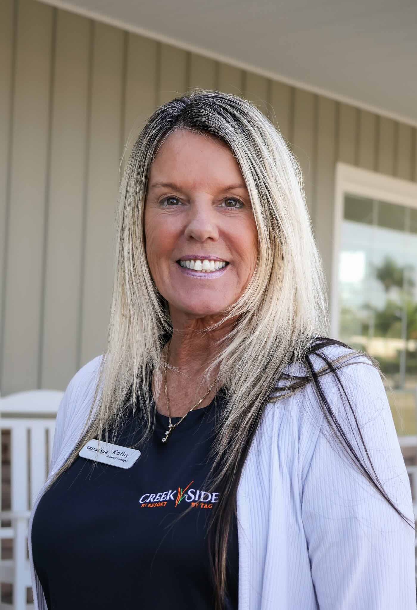 You may remember Kathleen from last season. She is our Assistant manager/Front Office staff member. Kathy would like you to know that she is from Rockville Centre, New York, and has lived in Punta Gorda full-time for 7 years and part-time for 30+ years. Kathy loves baking, going to the beach, boating, golfing, the mountains, and four-wheeling. She has been married for 38 years; her family is her utmost treasure.